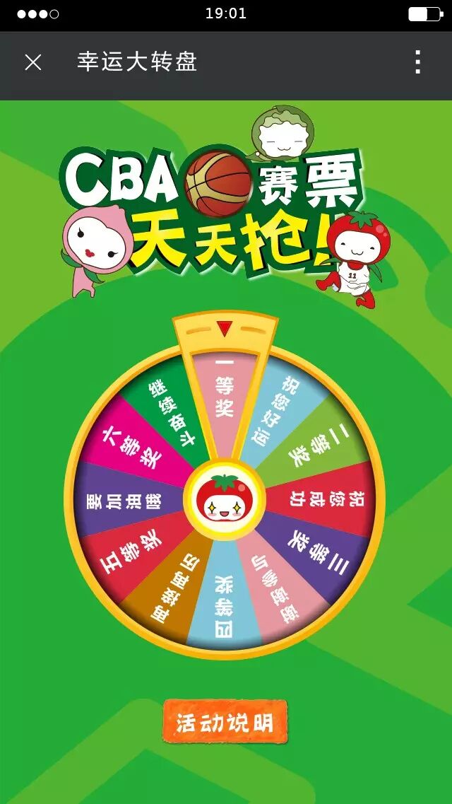 丰厚奖品,不要白不要,你不领他就领!奖项设置:活动期间,每天一名一等奖(CBA门票一张),二等奖至六等奖均可抽取到不同分值的红包哦。