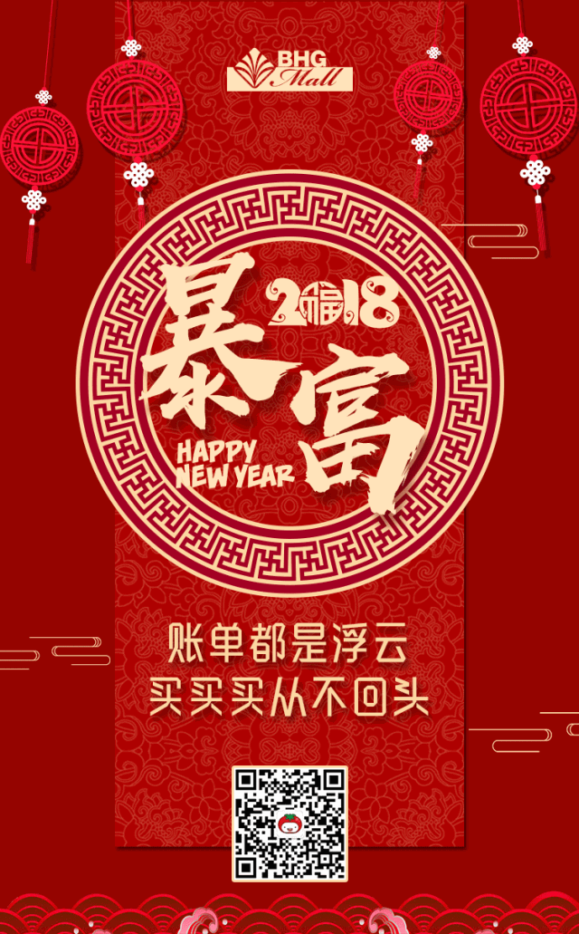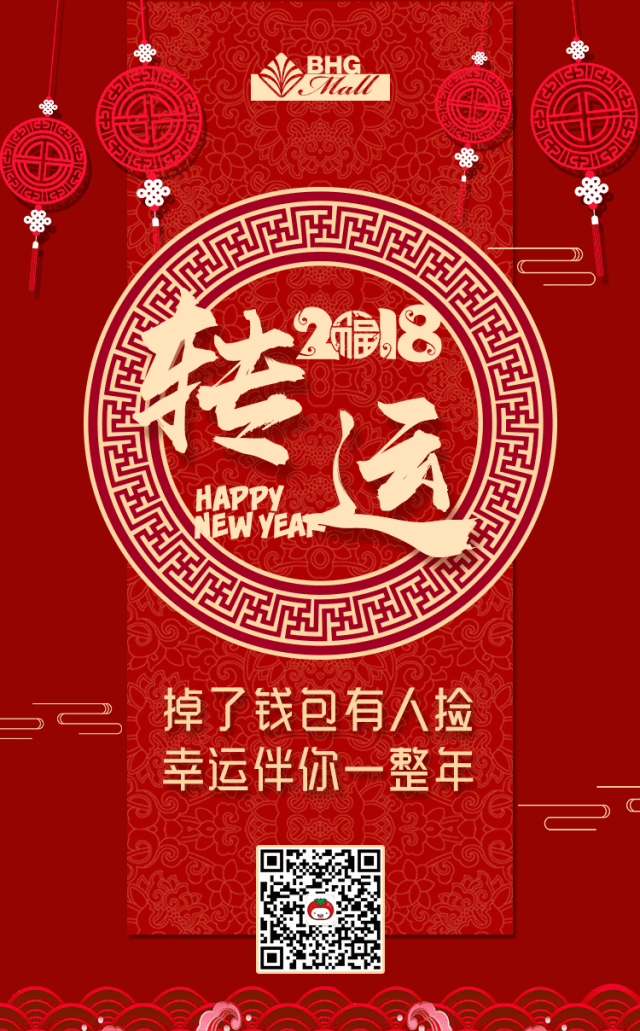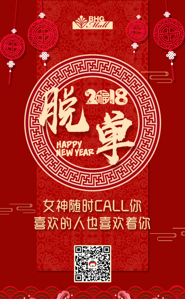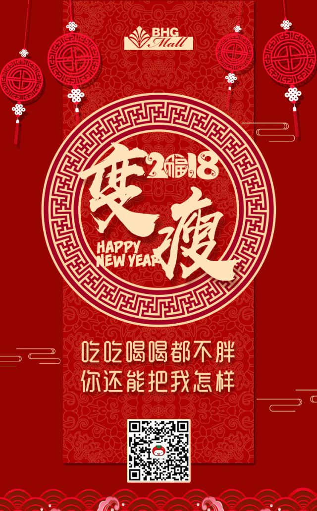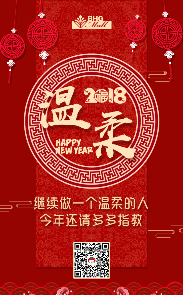 过了农历最后几天, 我们就算彻底告别2017; 回首过去, 除了年龄+1,体重+1,头发-1006, 你收获了什么呢? 在即将到来的新年里, 你又有什么愿望呢? 而BHG Mall北京华联购物中心的新年愿望是 将最好的爱, 统统都留给广大消费者, 无论春节还是放假, 我们一直在这里等你, 奉上我们最真挚的祝福! 希望在新的一年里, 我们互相陪伴, 让生活拥有更多温暖, 也祝你在未来一年里事事旺旺, 摆脱水逆一路666~ 事业爱情双丰收 BHG Mall 北京华联购物中心 特意奉上新年如意签, 助你实现新年心愿~ 快来随机点击图片,查看你的2018关键词 你以为查看完关键词就完事了, 不是这样, 我们有比转发锦鲤更有效的新年签 等你来领取~ 最后, BHG Mall 北京华联购物中心 在这里给大家拜年了, 祝大家狗年大吉,万事如意~