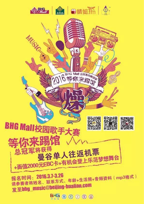 BHG Mall以动、正、鲜、美、益的全新生活主张引领新生代购物中心体验热潮!预祝参与本次歌手大赛的选手们能够超水平发挥,展现活力涌动青春激情,2016让我们一起燥起来!